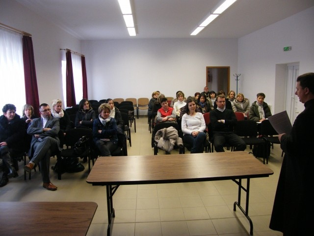 A kiállítás megtekintése után Déri Péter elmélkedését hallgathatták meg Mindszenty József pedagógusi munkájáról, amelyben szintén nagy szerepet játszott a családi házból hozott hite, kitartása, állhatatossága. A plébános beszélt a hercegprímás zalaegerszegi éveiről, hitoktató munkájáról is. Hangsúlyozta, hogy a ma pedagógusai is csak szeretettel, következetességgel, szigorral és hitelességgel tudnak eredményesen nevelni.