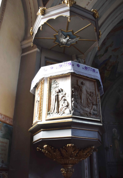 A szószék a bal oldali diadalívpillér előtt (Fotó: Simon Anna, 2024)