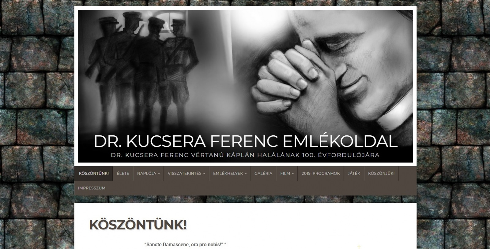 „Sancte Damascene, ora pro nobis!”, vagyis „Damaszkuszi Szent János, könyörögj érettünk” – írta naplójában többször is Kucsera Ferenc atya. Ezzel a könyörgéssel köszöntik a készítők a honlapra látogatókat.