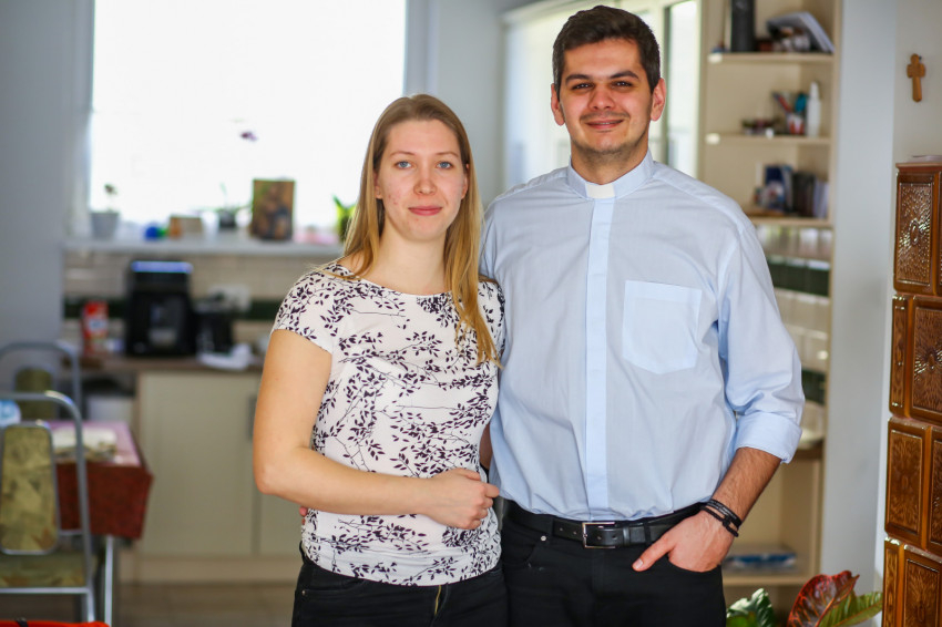 Életüket a parókus, Jaczkó Sándor segíti. „Ő keresztelt huszonhat évvel ezelőtt. Szoktam is kérdezni, gondolta-e a keresztelőn, hogy a leendő káplánját tartja a kezében. Nagy segítség nekem, hogy együtt dolgozunk, óriási szükségem van a bölcsességére. És öröm számomra, hogy hasznára van a fiatal koromból adódó lendületem, az az erő és lelkesedés, ami bennem tombol.”