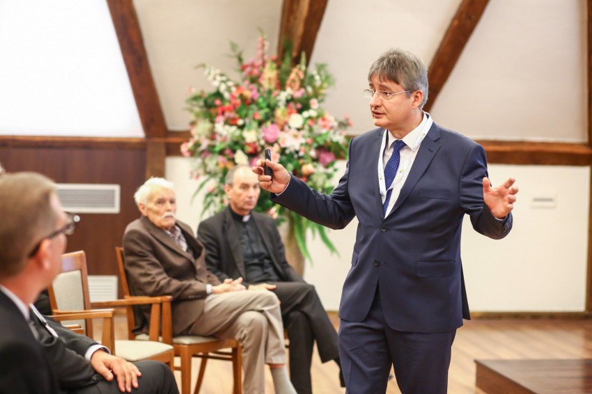 Soltész Miklós egyházi és nemzetiségi kapcsolatokért felelős államtitkár a konferencián arról beszélt, hogy a szabadság–egyenlőség–testvériség hármas jelszava alatt a liberalizmus nem csupán az állam és az egyház szétválasztásáért küzd, hanem az egyház megszüntetése a célja. – Kérdés, hogy erre mit reagálunk. A támadások elbizonytalanítanak, vagy képesek vagyunk kiállni az értékeink mellett? Ismerjük a kommunista rendszer alatti üldöztetést, de a mostani, főképp a fiatalokat érő globális „támadás” alattomosabb, erkölcsileg rombol, nem veszi figyelembe a természet alaptörvényeit sem – szögezte le Soltész Miklós.