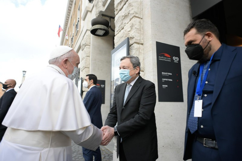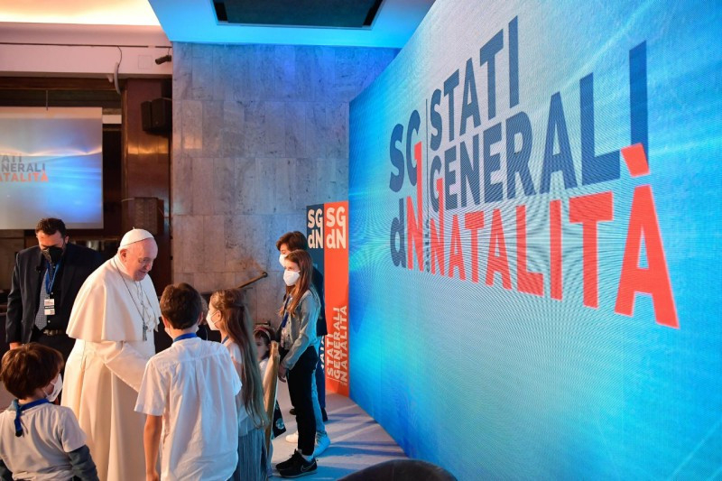 Ferenc pápát Mario Draghi olasz miniszterelnök fogadta a konferencián. A Családegyesületek Fóruma által szervezett program célja az olaszországi demográfiai válság feltárása volt, amit a Covid-19-járvány, amely a szegénység növekedését eredményezte a családok körében, még inkább sürgetővé tett. A találkozón szakértők és magas szintű olasz tisztviselők gyűltek össze. Beszédében Ferenc pápa üdvözölte a kezdeményezést, hangsúlyozva, hogy elengedhetetlen Olaszország újbóli fellendítése, mely folyamatot „az élet és az ember támogatásával kell kezdeni”.