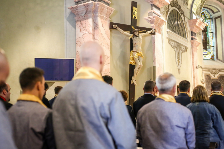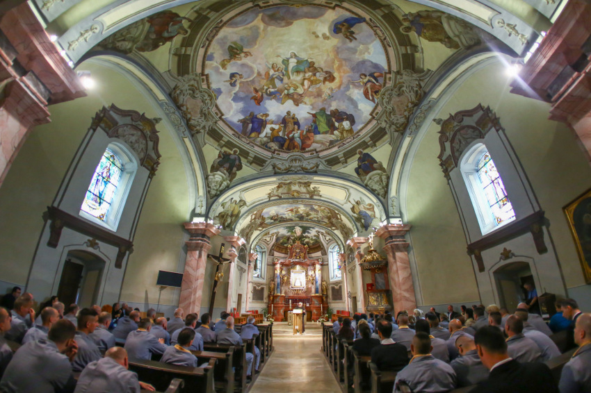 Borongós, bánatos idő volt ezen a májusi szerda délelőttön, mintha együtt búslakodott volna a természet azzal a hatvannyolc fogvatartottal, akik az ország tizenhat fegyintézetéből érkeztek lelki felfrissülésre a ferences kegyhelyre. Miközben a nyitó szentmisére várakoztunk, a Sopronkőhidán szolgáló börtönlelkész kereste meg az elítélteket, hogy az ő saját kéréseik, imáik hangozhassanak el a szertartáson. A két éven belül szabaduló, alacsony vagy közepes biztonsági kockázatba sorolt, együttműködő, szabálykövető fogvatartottakhoz és kísérőikhez egy lengyel delegáció is csatlakozott (így az evangéliumot két nyelven olvasták fel).