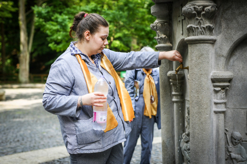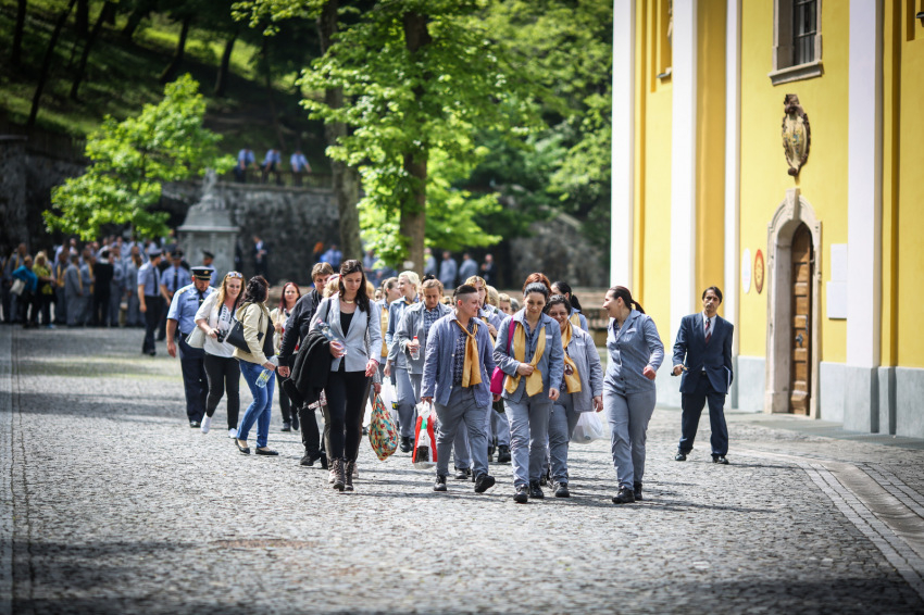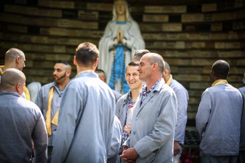 A bizonytalan időjárás miatt a szabadtérre tervezett lelki program a templom falai közé szorult, de az előadások végére egészen derűs idő volt már, így a börtönbe való visszatérés előtt a rabok még egy kicsit élvezhették viszonylagos szabadságukat: felfedezték a kegyhely különböző tereit, vizet vehettek a szentkútból.