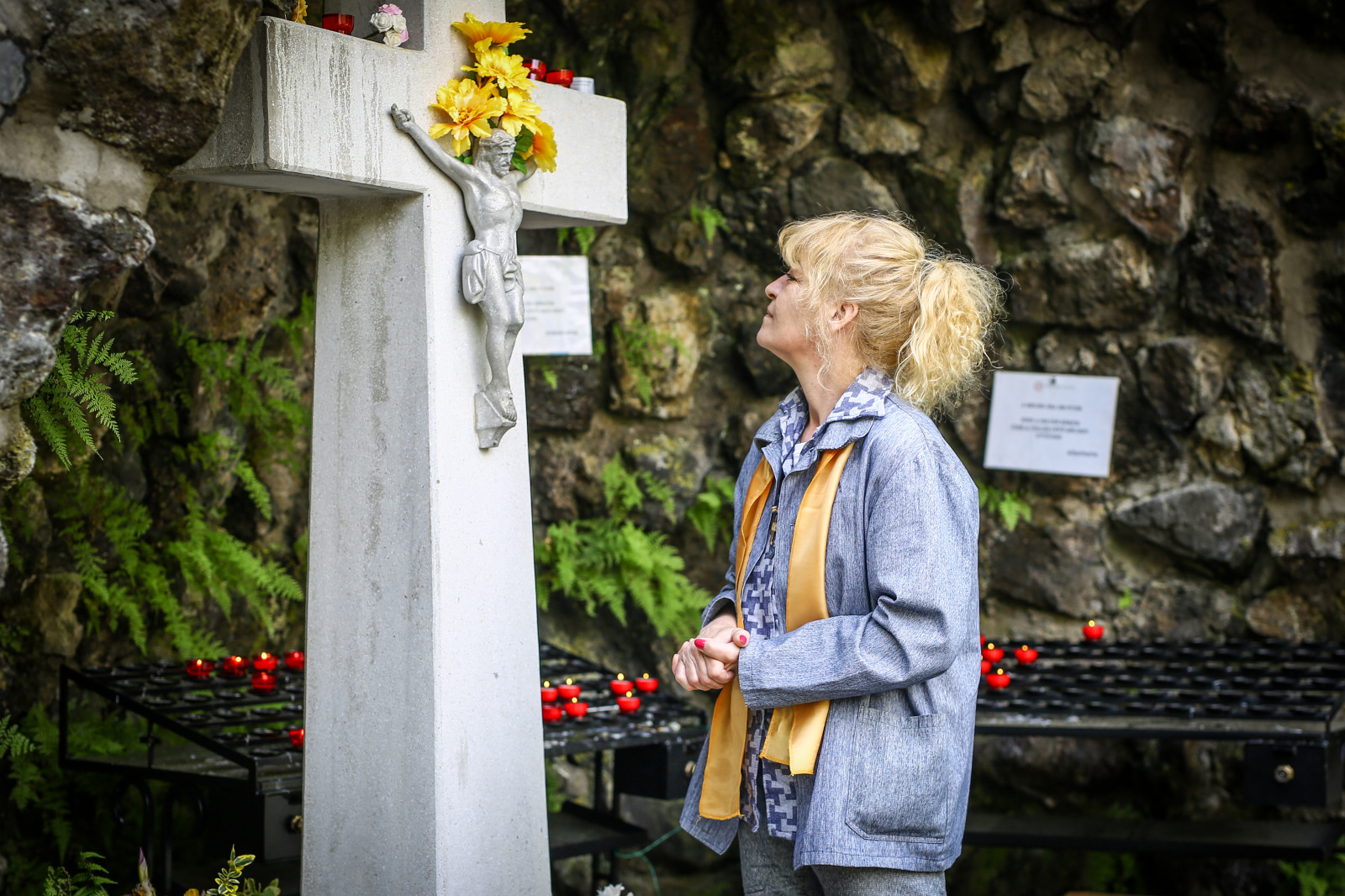 Andrea is, akivel a zarándoklat vége felé beszélgettem, ott volt a könyörgők között, s azt kérte Istentől, ne vegye le a szemét róla. A negyvenes évei végén járó nő, aki október közepén hagyhatja el a börtönt, úgy érzi, az igazságszolgáltatás áldozata. Ő csak végezte a pénzügyi munkáját, és kellett valaki, aki elvigye a balhét – mondta. Az, hogy mindent Istennel beszél meg, a börtönben alakult ki. Előtte is hitt a pozitív gondolkodásban, a szeretetben, de rá kellett jönnie, hogy hiába hiszünk a szeretet törvényében, megjelenik a félelem az életünkben, és ezáltal elvesztünk mindent, vagy fokozatosan, vagy egyszerre. „Lehet Isten nélkül elkezdeni az életünket, de nem lesz elég kitartásunk, nem leszünk kősziklák. Úgy viszont, hogy Istennel vagyunk és ő munkálkodik bennünk, olyan dologra vagyunk képesek, amit korábban nem is gondoltunk volna magunkról.”