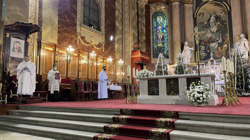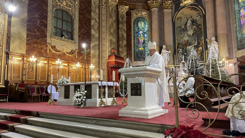 A főpásztor a szentmise elején arra biztatott, hogy erősítsük magunkban istengyermekségünk tudatát, Ferenc pápa januári szándékához csatlakozva imádkozzunk azokért, akik hátrányos megkülönböztetést vagy üldöztetést szenvednek vallásuk miatt, és imádkozzunk a jubiláns házaspárokért is.