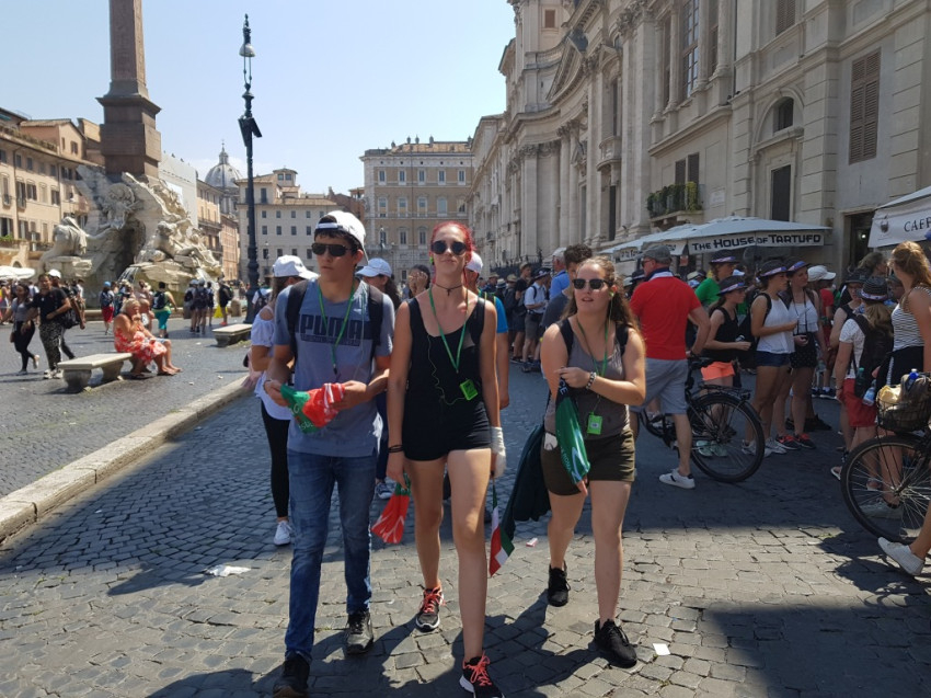 Élőben tekinthettük meg azokat az épületeket és nevezetességeket, amelyeket a történelemkönyvek lapjairól már ismertünk. A városban tartózkodásunk második napján volt a közös magyar mise, amelyen mintegy kétezer ministráns, diakónus, pap és kísérő vett részt. A Szent Ignác-templomban a szertartás végét jelentő himnusz valahogy még inkább összehozott minket Rómában, ezerkétszáz kilométernyire otthonunktól. Természetesen a templom előtt nem maradt el a „ria-ria-Hungária” sem. Az utolsó nap a tengerparton hűsöltünk, ami valóban ránk fért a mediterrán klímán. Összességében csodás öt napot töltöttünk együtt, sok új emberrel ismerkedtünk meg, és élményekkel gazdagodva érhettünk haza.