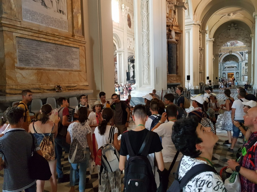 Az első megállónk Nagykanizsán volt, a Jézus Szíve-templomban, ahonnét Szűcs Imre plébános áldásával indultunk neki a nagy útnak. A hosszú utazás után estefelé elfoglaltuk szállásainkat Frascatiban, Róma mellett, és a vacsora után jöhetett a jól megérdemelt pihenés.