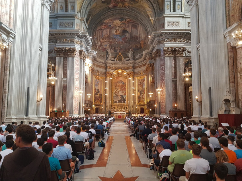 Szerdán ismét felkerekedtünk, hogy láthassuk a Lateráni Szent János- és a Szent Péter-bazilikát. A Szent Péter téren a hosszas várakozás alatt ismét előkerült a gitár. Ezután a Szent Ignác-templomba mentünk, ahol a magyar zarándokokkal együtt szentmisén vettünk részt, melyet Ternyák Csaba egri érsek mutatott be a jelen lévő püspökökkel és papokkal. A szentmise után még sokáig énekeltünk a templom előtti téren, és örültünk egymásnak, kifejezve nemzeti összetartozásunkat.