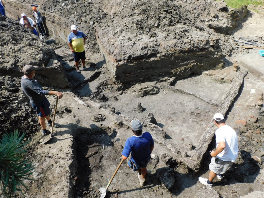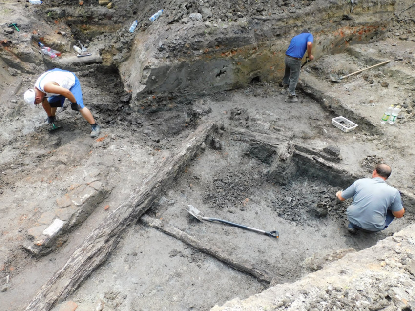 Tavaly nyáron kibontottuk a betonozott parkoló alatt lévő téglafalakat. Itt a falszorosba később beépített épülethez tartozó falak alapjait is megtaláltuk. Néhány kisebb szelvényt a várudvaron is nyitottunk, de a munka nagyobb részében a palánkfal maradványait kutattuk. Több feltárható területet találtunk, ahol a magas talajvíz jól konzerválta a palánkfal faszerkezetének alsó részét.