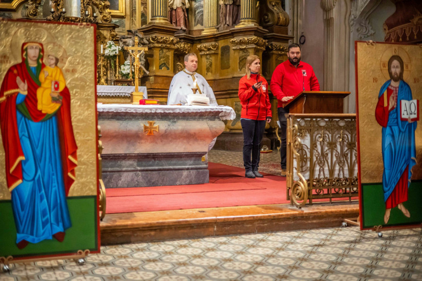 A Szent Mihály-templomban ünnepelt szentmise végén Gáborij Damjan görögkatolikus lelkipásztor, aki tizenkét éve végzi a Magyarországon tartózkodó ukránok pasztorációját, köszöntötte a magyar Katolikus Karitász képviselőit, akik ajándékokat hoztak az itt élő, háború elől menekült ukrán közösség családjainak.