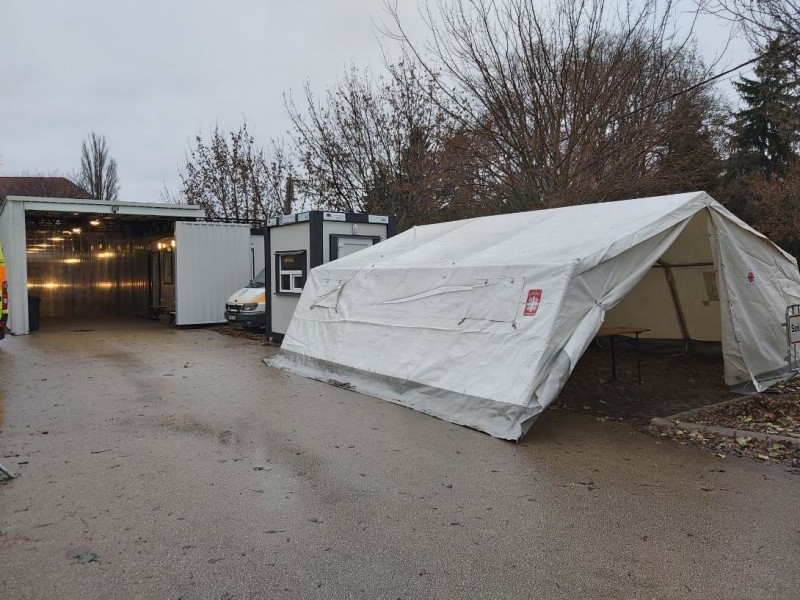 Az irányításnál dolgozó egyik önkéntes munkatárs kereste meg azzal a kéréssel a Székesfehérvári Egyházmegyei Karitászt, hogy rendelkezésre tudna-e bocsátani egy sátrat, ami a mintavételi ponton szolgálatot teljesítőket és a mintát adókat, ha a hideg ellen nem is, de a szél és az eső ellen védeni tudja. A sátrat a hívást követő nap a Szent Kristóf Ház fogyatékkal élő fiataljainak segítségével adták át.