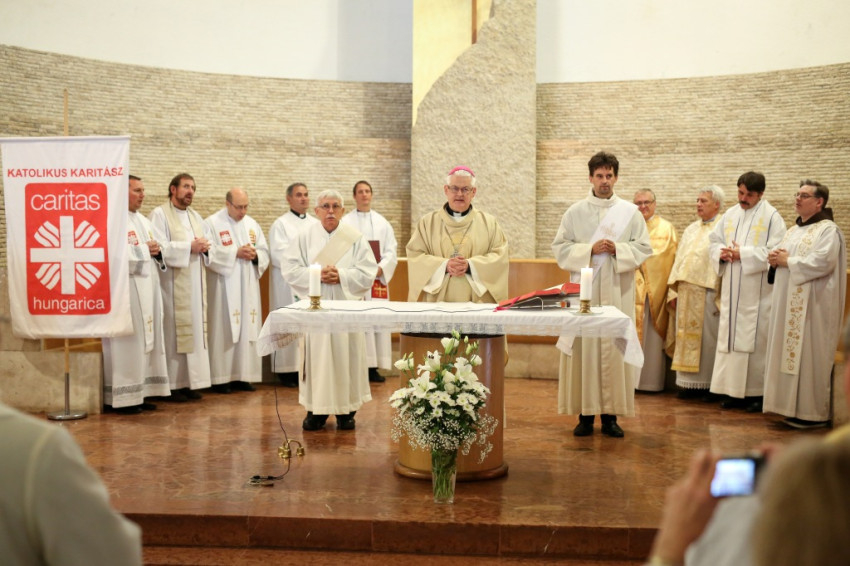 A karitászmunka Istentől kapott küldetés, amelyre oly nagy szükségünk van ma, nemcsak az ínség miatt, hanem azért is, hogy az Egyház hitelesen tudja megmutatni ebben a furcsára toríztott világban küldenétésének erejét és jelentőségét. Az Egyház leghitelesebben a karitászmunka által tud jelen lenni a világban. Mária segítsen bennünket anyai szeretetével, formálja szívünket, erősítse szeretetünket és vezessen minket kézen fogva Krisztus nyomában. Hogy Istenről tanuságot tegyünk, hogy Jézus országát építsük és hogy a tőlük kapott szeretetünkkel szerethessük, ünneplőbe öltöztessük azon emberek szívét, akiket az isteni Gondviselés az utunkba vezérelt – zárta homíliáját Spányi Antal püspök.