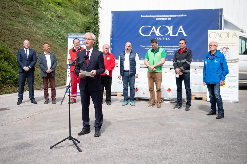 Révész Máriusz, az önkéntességet és adományozást koordináló kormányzati akciócsoport vezetője a Caola Zrt. 5 ezer liter kéz- és felületfertőtlenítőszer-adományának átvételekor úgy fogalmazott, a járvány idején Magyarországon eddig még soha nem látott összefogás bontakozott ki; a kis- és középvállalkozások, a nagyobb hazai cégek és a multinacionális nagyvállalatok is igyekeztek odafigyelni a bajbajutottakra. Hozzátette: mindent beleszámítva – az adományokat, az önkéntességet és a digitális szolgáltatások értékét is – az adományozás mértéke meghaladta a 30 milliárd forintot.
