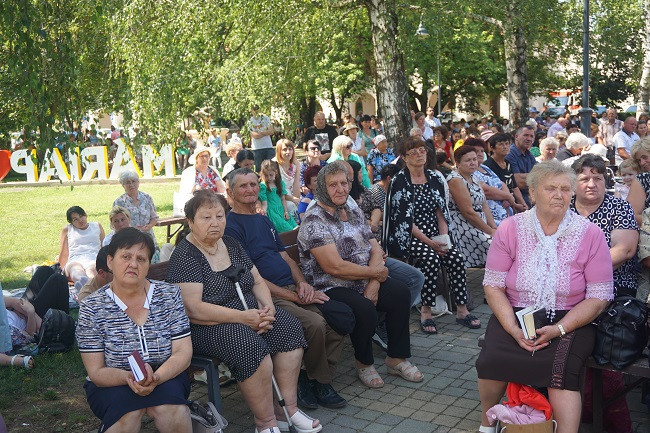 Miközben a kegytemplom előtti tér árnyékos részei megteltek a Kárpátaljáról busszal érkező zarándokokkal, Pindzsu István atya tartott elmélkedést, amit Ferenc pápa a nagyszülők és idősek világnapjára írt üzenetének felolvasásával zárt.