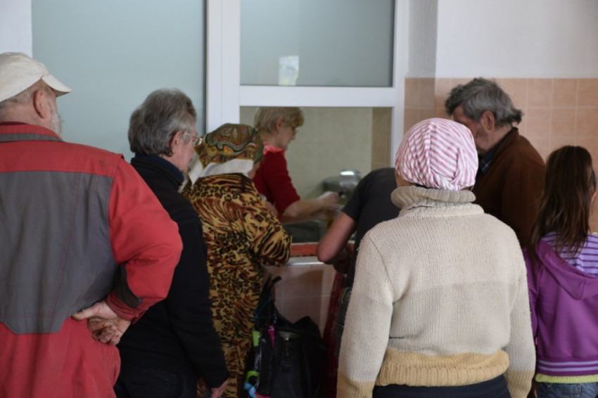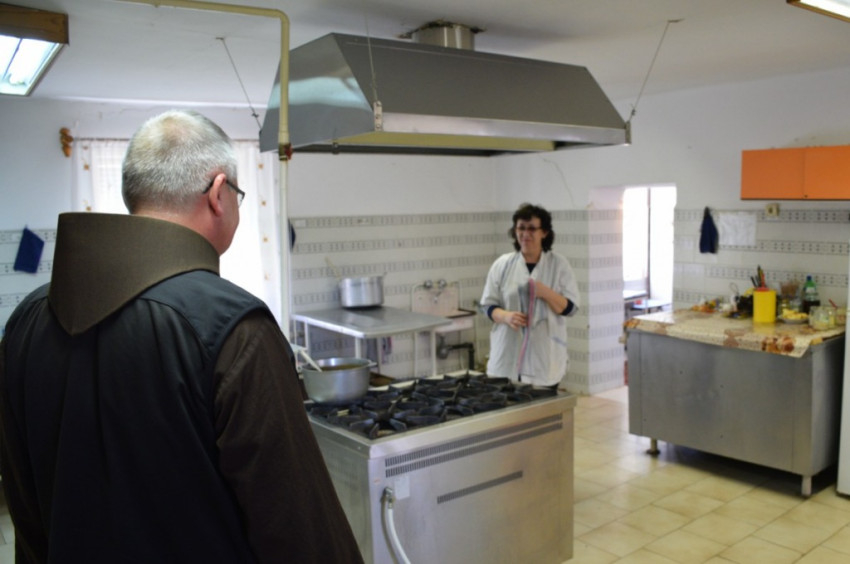 Az alapítvány munkatársai szerda reggel zsolozsmával egybekötött szentmisén vettek részt, majd a nagyszőlősi szegénykonyhára látogattak, ahol Német Sándor, a nagyszőlősi Katolikus Karitász vezetője fogadta a csoportot. A kapu előtt már sokan sorakoztak az ételosztásra, bár az csak jóval később kezdődött. A konyha egy – jelenleg is felújítás alatt álló – kétemeletes épület legalsó szintjén található, és közel huszonöt éve biztosít meleg ételt a rászorulóknak mindennap. „Mindenkinek adunk enni, aki eljön érte – mondta el egy hölgy a konyháról. – Általában 60-65 ember érkezik, és nagyjából 160 adagot visznek el. Legtöbbjük az ételt hazaviszi a családnak, néhányan pedig itt fogyasztják el. Ezeknek az embereknek mindennap innen kerül a meleg ebéd az asztalukra. Nekik ez egy biztos pont: nagyon számítanak ránk, és nagyon hálásak is a munkánkért.”