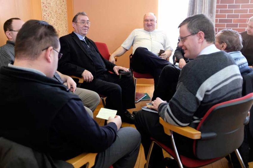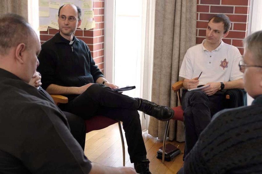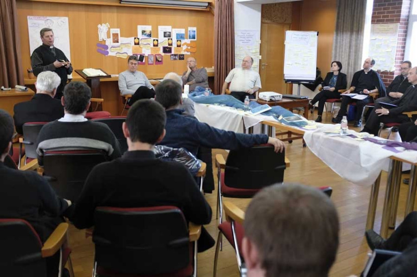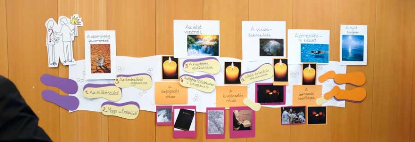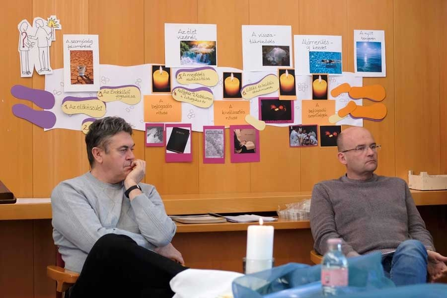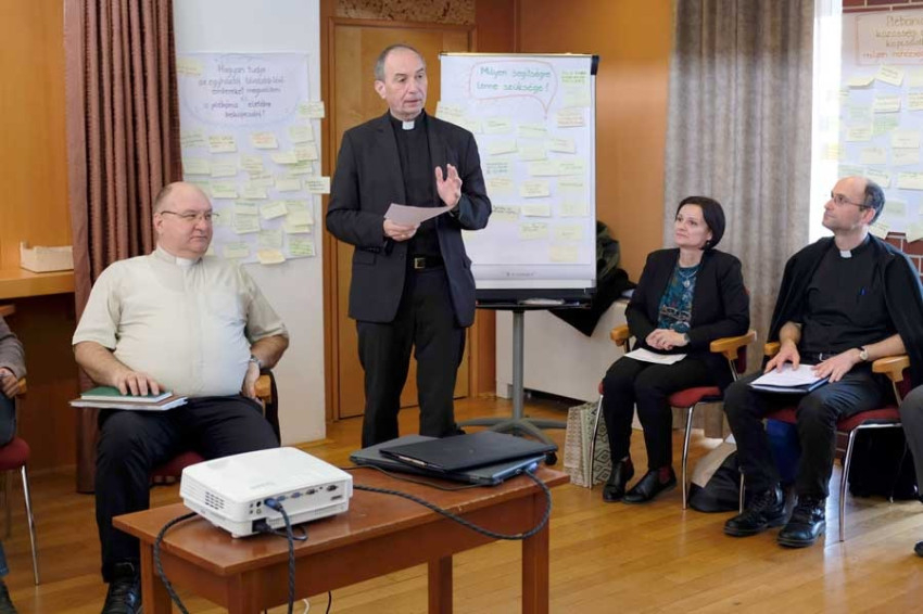 A hétfő délelőtt rövid ráhangolódással kezdődött Tóth Lászlóné pedagógiai főmunkatárs vezetésével, aki három kérdéssel indította el a közös gondolkodást: Plébániája közösségi életével kapcsolatban milyen nehézségekkel küzd? Hogyan tudja az Egyháztól távolabb lévő embereket megszólítani és a plébánia életébe bekapcsolni? Milyen segítségre lenne szükség?. A válaszként megfogalmazott gondolatok az egész képzést meghatározó szempontokként voltak jelen.
