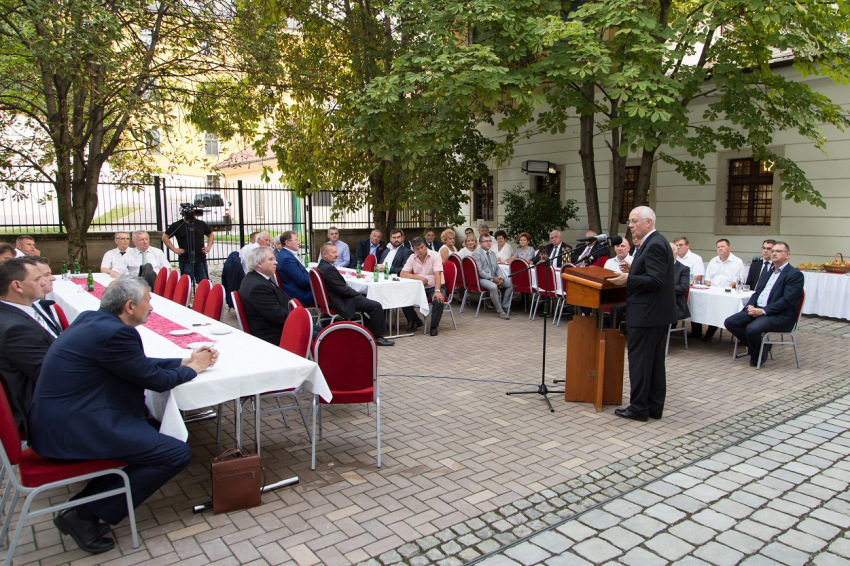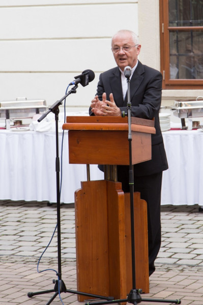 Juhász Ferenc, a helyi Egyházmegyei Katolikus Iskolai Főhatóság (EKIF) elnöke köszöntőjében az előző napra, Szent István ünnepére utalva Szentágothai János professzort idézte, aki egy alkalommal azt nyilatkozta, hogy a Szent Jobb olyan jó állapotban van, hogy le lehetne venni a király ujjlenyomatát. A szent ereklye iránti tisztelet nem tesz lehetővé ilyen vizsgálatot, de nincs is rá szükség, hiszen mi magunk vagyunk Szent István ujjlenyomata, s ezt látjuk a közigazgatásban, a templomokban, iskolákban. Juhász Ferenc hozzátette: nagy örökség ez, és nagy feladat. A főegyházmegye oktatásban vállalt szerepének pozitív hatását remélhetőleg egyre több helyen érzik, és ez az Egyház misszióját is erősíti.