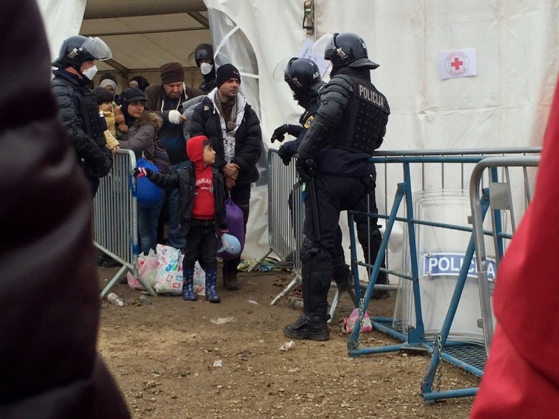 A szlovén rendőrök határozott, de békés fellépésének köszönhetően nyugalom van a táborban, és szervezetten folyik a menekültek ellátása és szállítása.