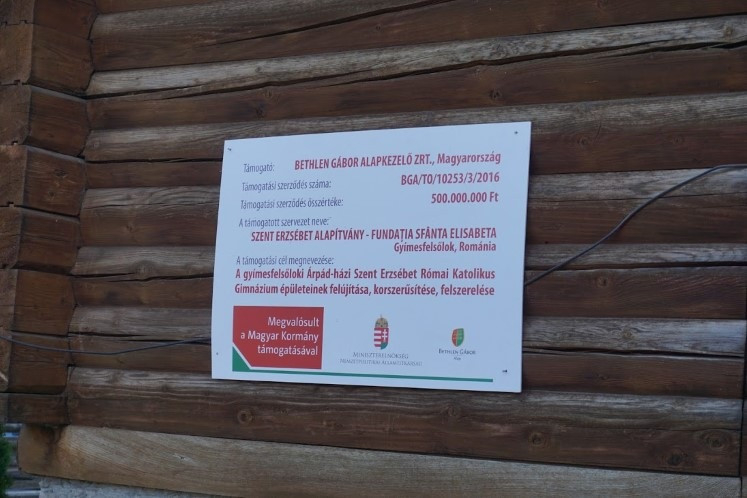 Ötszázmillió forinttal támogatja a magyar kormány a gyimesfelsőloki Árpád-házi Szent Erzsébet Római Katolikus Gimnázium épületeinek korszerűsítését. A Gyimesek első középiskoláját huszonöt éve alapították.
