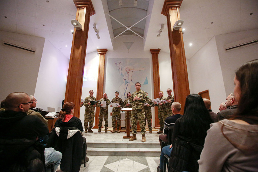 A kórus Sticz László vezérőrnagy, az EUFOR parancsnoka meghívására érkezett Szarajevóba, ahol a koncert mellett énekes szolgálatukkal részt vettek azon a szentmisén is, amelyet Kálinger Roland alezredes, a magyar kontingens tábori lelkésze mutatott be advent első vasárnapján.