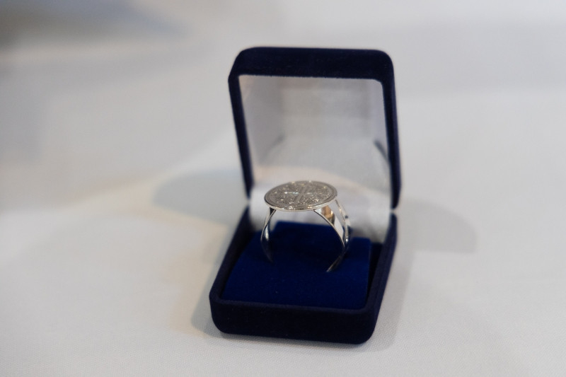 – Nagy Szent Gergely pápa Marton Zsolt püspök úr egyik kedves szentje, így nem volt kérdés, hogy neki rá kell kerülnie a kehelyre. Utánaolvastam a pápa életének és több ábrázolást is megnéztem róla: mivel sokat tanulmányozta a Bibliát és sokat írt, attribútuma a toll és a galamb lett. Ez utóbbi a Szentlélek jelképe, aki sugallta neki az írásokat. Kérdés volt, hogy cizellálással vagy véséssel kerüljön a pápa a kehely kosár részére, végül úgy döntöttem, hogy vésem, mert a gyűrűn is véset van, így összekapcsolódik a két tárgy.