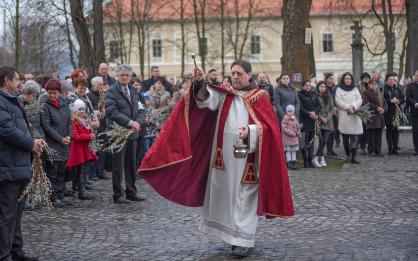 A misztériumjátékot követően a nézők és a szereplők a kegytemplomban szentmisén vettek részt. A barkaszentelésre délelőtt került sor.