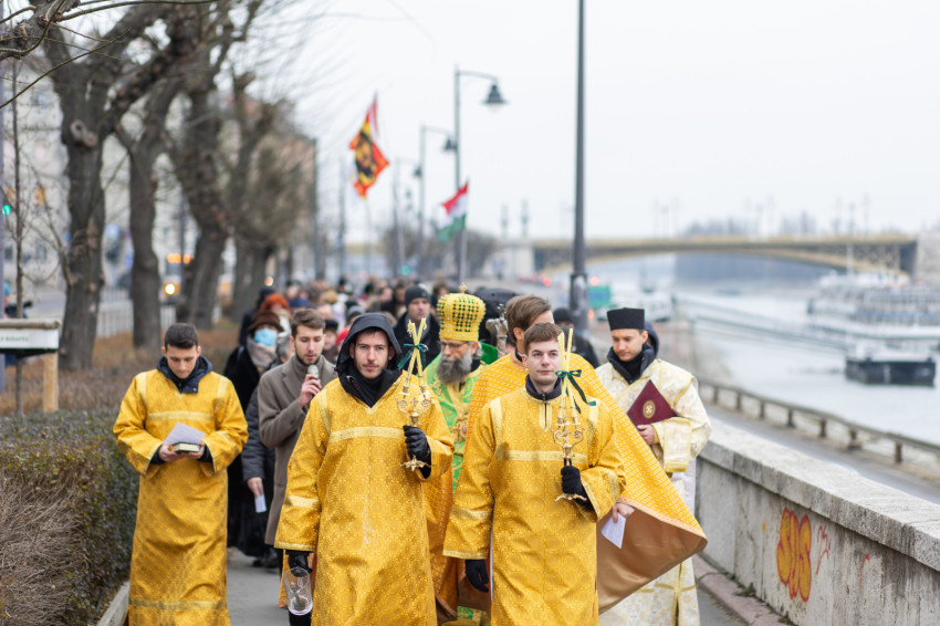 A Szent Liturgia után Kocsis Fülöp érsek vezetésével a hívek menete a Dunához indult. Többen megjegyezték, hogy az elmúlt két évben vízkeresztkor zuhogott az eső, ezúttal viszont csak hideg van.