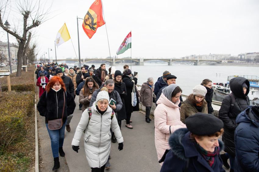 A Budai Görögkatolikus Egyházközség papsága és a hívek imádkozva, énekelve végigvonultak a rakparton.