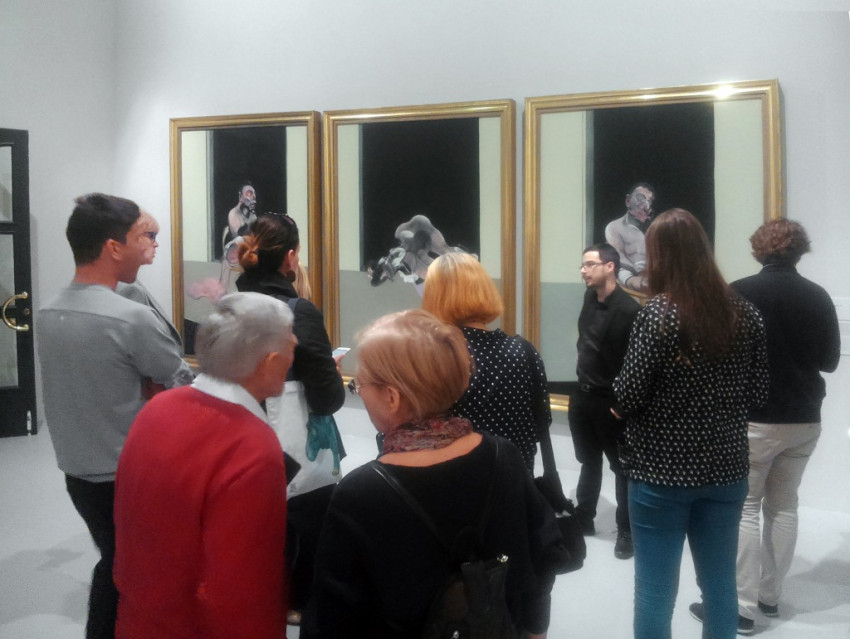 A kiállításon láthatunk egy Giacometti-szobrot is, amely a magányosság kifejeződése. Francis Bacon is magányos, szorongó figurákat festett abban az időben, ezzel is kifejezve a háború pusztítása miatt kialakult veszteségérzetet. Az elnevezés – Londoni Iskola – első hallásra megtévesztő lehet a közönség számára, ugyanis szó sincs semmiféle iskoláról. Ezek az alkotók Londonban élő festők voltak, akik néha találkoztak, kávéházban, kocsmában vagy bárhol, de iskolát semmiképpen sem alkottak. Emberi kapcsolatok, szakmai és baráti viszonyok sűrű hálózataként működött ez a társaság.