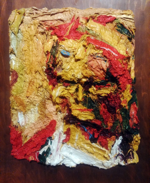 A fentiekben említettük az anyagszerűség hangsúlyozását. Ennek a végletekig felfokozott példája Frank Auerbach E. O. W. portréja I., 1960 című olajfestékhalmaza, amely szinte már plasztikává válik, és az összeállt, megszáradt festék szoborszerűen hat a nézőre. A nem éppen rokonszenves arc nehezen fedezhető fel a festményen. De nem ez az egyetlen erősen pasztózus kép a kiállításon. Auerbach másik alkotását is vastag festékréteg fedi, Oxford Street-i építkezés I., 1959–1960 a címe. A barnás tónusok a föld színeit idézik. Konkrétan nem nagyon lehet kivenni, hogy mi van a képen, inkább csak sejthetjük, hogy egy építkezés, amely a háború utáni években, Londonban is sok porral, piszokkal járt.