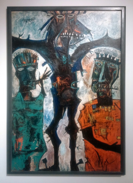 A Londonban működő társaság egy másik alkotója, az indiai származású Francis Newton Souza Keresztrefeszítés, 1959 című festménye középpontjában Krisztus szenvedésektől megtört teste látható. A festő a nyugat-indiai katolikus tartományban, Goában született. Ő volt az egyik első indiai művész az ország függetlenségének kikiáltása utáni nemzedékből, aki sikeres pályát futott be az 1950-es évek Nagy-Britanniájában. A kép mellett ezt olvashatjuk magyarázatképpen: „Souza a gyötrődő fekete Krisztust ábrázoló képbe mind a vallási konfliktusokkal kapcsolatos személyes érzéseit, mind a fekete és fehér, keresztény és nem keresztény, kolonizált és kolonizáló társadalmak közötti kulturális feszültségeket belesűrítette.”