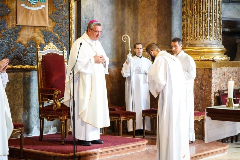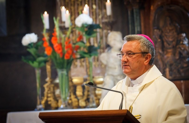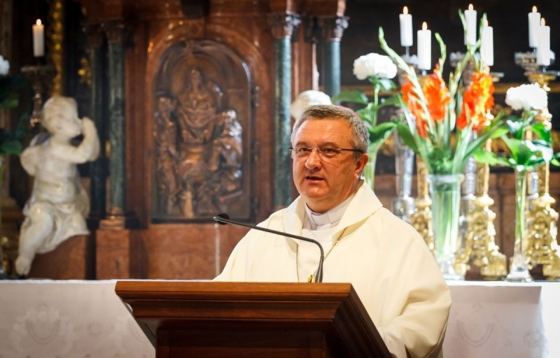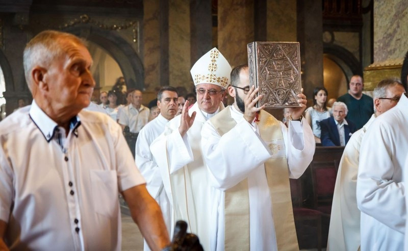A zsoltáros azt mondja: „Boldog az a nemzet, amelynek Istene az Úr” (Zsolt 33,12). Szent István király arra vezette nemzetét és arra tanít bennünket ma is, hogy mindnyájan Istent tekintsük a mi Urunknak – kezdte szentbeszédét Veres András megyéspüspök. – Szent István fiának, Imre hercegnek írt intelmeiben ez áll: „parancsainkban a szent hitet tesszük az első helyre”. Szent István tudta, hogy a hit az egész emberi létünket átjáró valóság kell hogy legyen. Nem pusztán egy intellektuális belátás, hogy Isten létezik, ennél lényegesen többről van szó, nem csupán egy hagyomány, egy szokás, hanem életforma, elköteleződés Isten ügye mellett.
