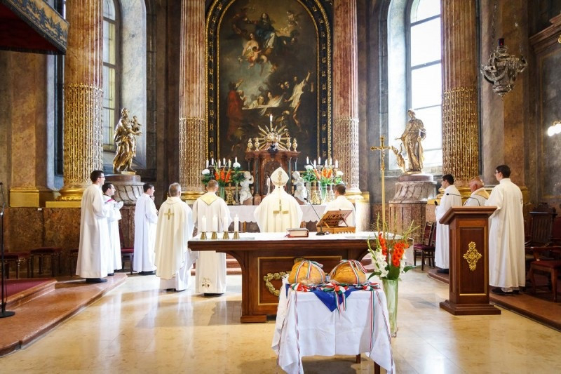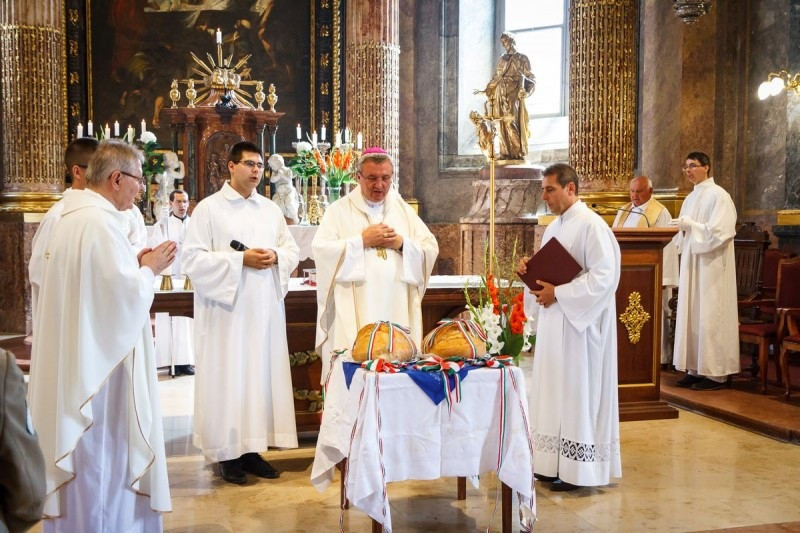 A főpásztorral koncelebrált Németh László általános püspöki helynök, Schmatovich János, a győri Német Ispita (Szentháromság) templom igazgatója, valamint Vlaj Márk győr-belvárosi segédlelkész. Veres András megyéspüspök a szentmise végén megáldotta az új termésből készült kenyeret.