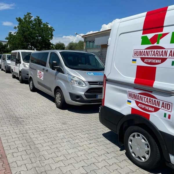 A konvoj biztonsági okokból kevesebb járművel indult; vezetői a konfliktus középpontjában megélt napok koordinátorai, Gianpiero Cofano és Tonio Dell’Olio. A rövid menetoszlopot vezető kocsiban velük utazik az Olasz Püspöki Konferencia (CEI) megbízottja, Francesco Savino püspök is.