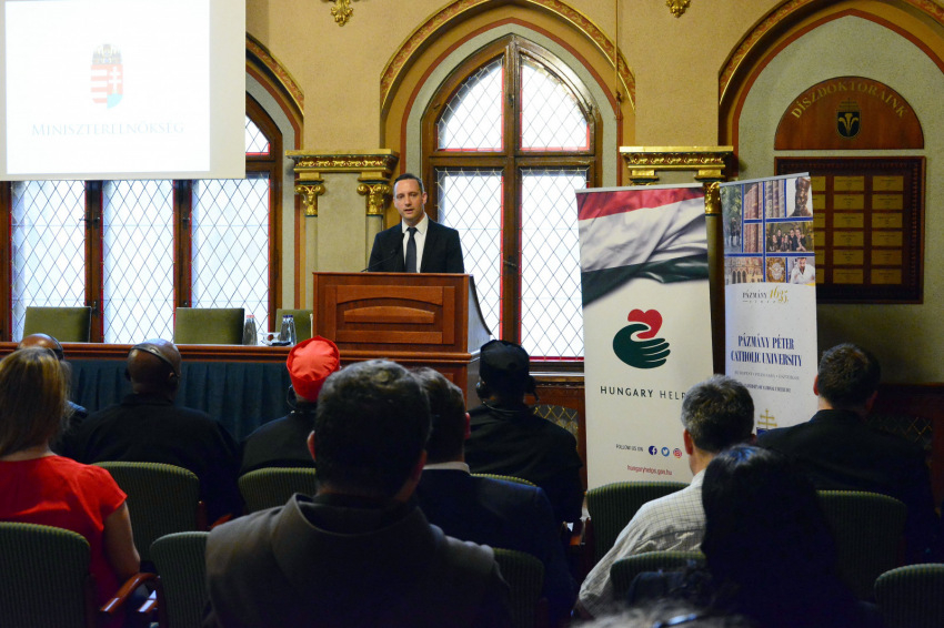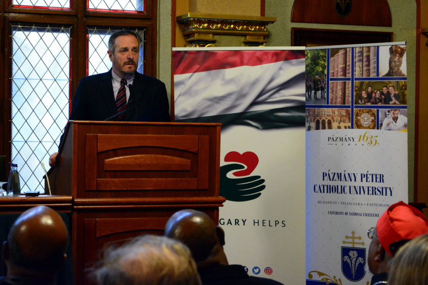 Azbej Tristan, az Üldözött Keresztények Megsegítéséért Felelős Államtitkárság vezetője felidézte, hogy fél évvel ezelőtt a Könny és szomorúság elnevezésű etióp menekülttáborba látogatott, ahol csaknem egymillió, főleg Szomáliából, Eritreából, Szudánból és Dél-Szudánból elüldözött emberről gondoskodnak az etióp egyházak szervezésében. A keresztényellenes erőszak terjed Afrikának ebben a régiójában, világszerte pedig 245 millió keresztényt üldöznek hitük miatt, ami humanitárius katasztrófa, de a Nyugat ezt elhallgatja, miközben támogatja a migrációt és hatalmas összegeket költ a bevándorlók integrációjára. Ezzel szemben a magyar kormány nem a migráció menedzselését, hanem az elvándorlás megelőzését szorgalmazza, vallja, hogy mindenkinek helyben, a szülőföldjén kell biztosítani az emberhez méltó életet. A Hungary Helps Program keretében eddig több millió rászorulóhoz jutottak el. Az államtitkár felidézte, hogy fél évvel ezelőtti látogatásakor a menekülttábor árváinak sátraiban Jézust és a szenteket ábrázoló posztereket látott, annak jelképeként, hogy a könny és a szomorúság helyébe az öröm és a remény léphet.