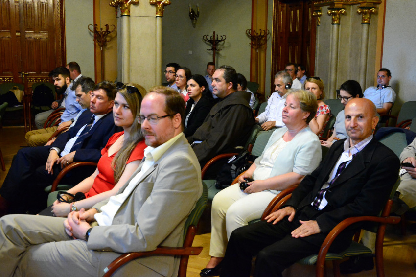 A megjelenteket Komáromi László, a PPKE jogi akrának dékánhelyettese, Azbej Tristan államtitkár és Hölvényi György EP-képviselő köszöntötték.
