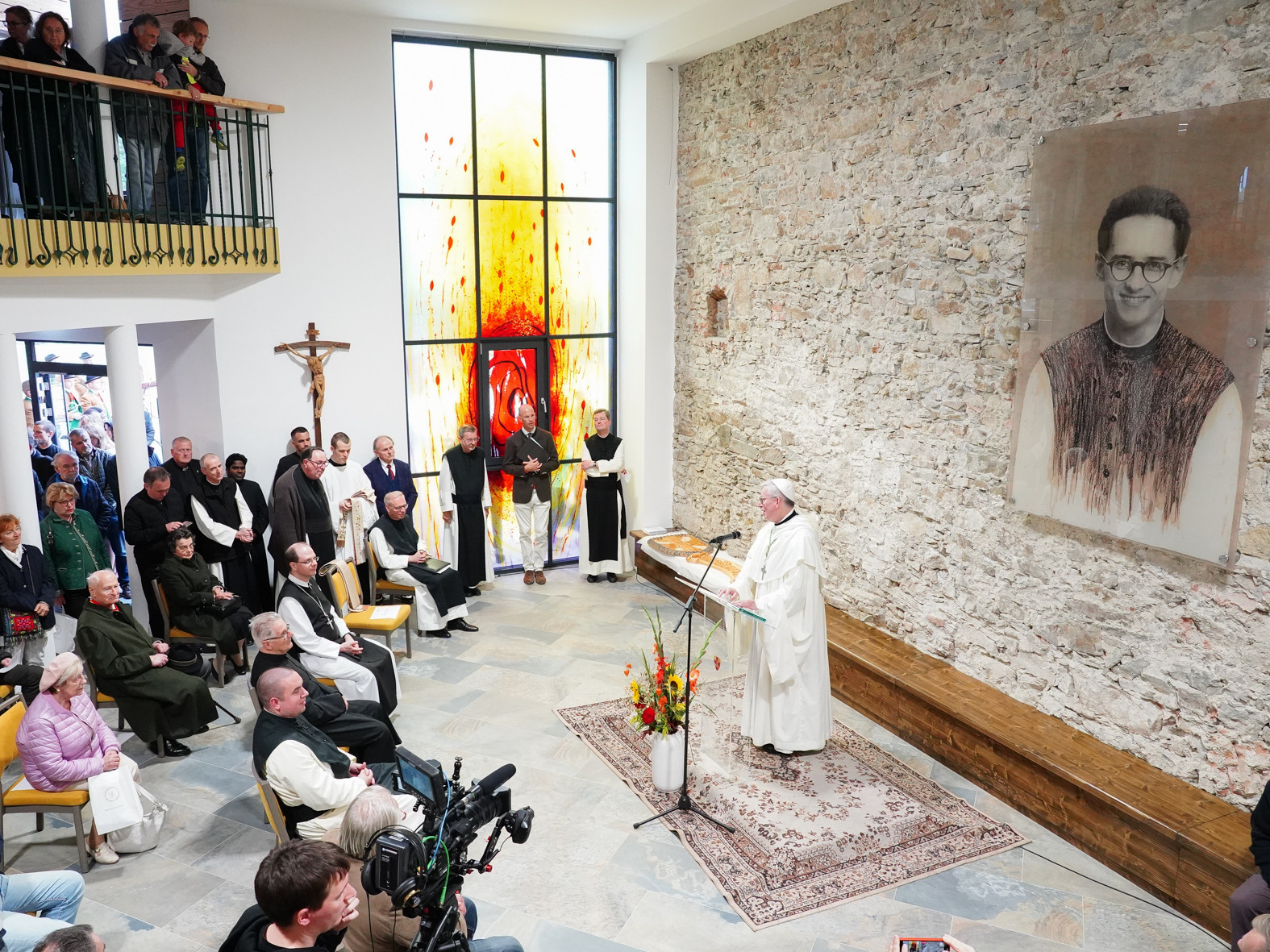 Vasárnap délelőtt a heiligenkreuzi ciszterci apátság Szent Kereszt-templomának új oltárképét készítő művész, Clemens M. Fuchs tartott előadást a nagy méretű festmény alkotási folyamatáról. A sokalakos kép jobb oldalán Boldog Brenner János tartja a keresztről levett Jézus Krisztus lábát. A festőművész ismertette a Szent Kereszt-templom további megújulásának terveit is, bemutatta annak makettjét és a készülő falképeket.