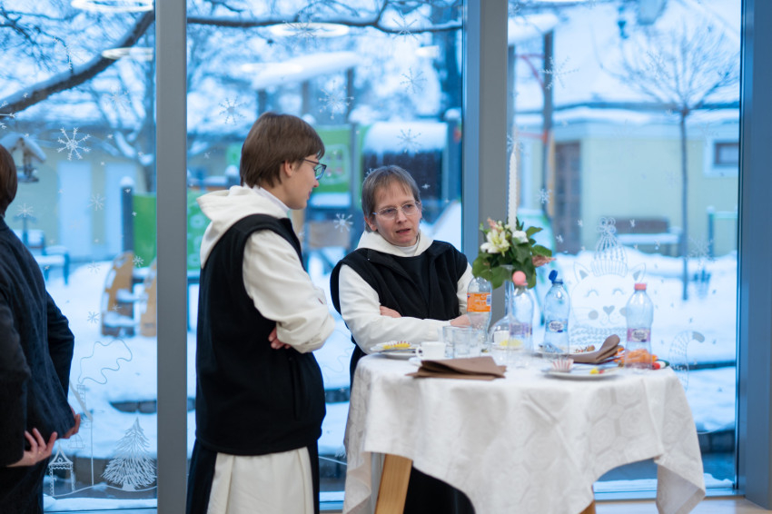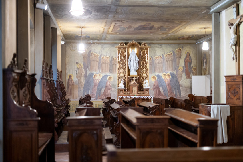 „Minden este imára hívjuk ide a lányokat, és tartok itt osztályaimnak hittanórákat is” – mutat körbe Franciska. Az intézmény múltjára rendkívül büszke tanárnő végigvezet a közösségi teremben felállított kiállításon, mely a nővérek áldozatos oktató-nevelő munkáját dokumentálja. Programokban gazdag iskolaévükben fontos helyet foglal el a hitélet, a női identitásban, önismeretben támogató nevelés.