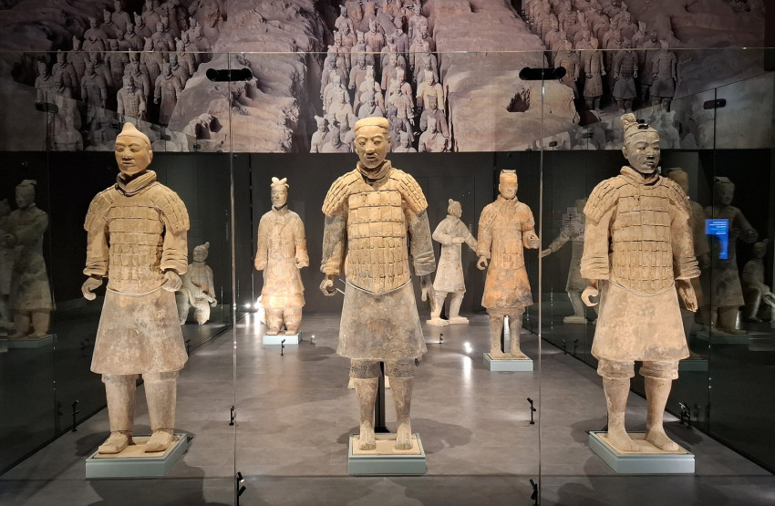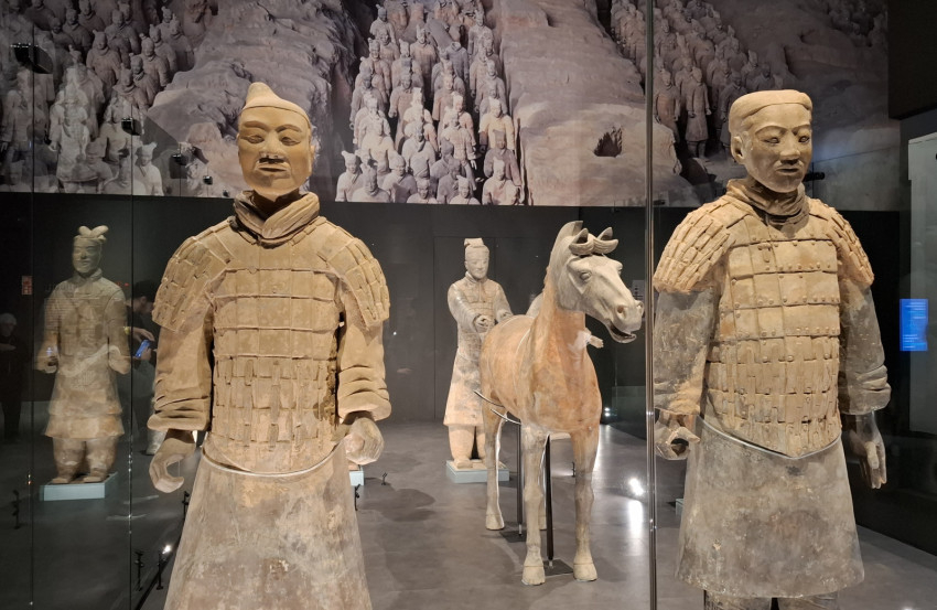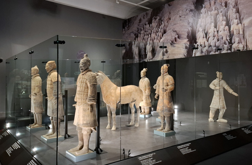A tárlaton fontos helyet kaptak az első kínai császár sírkertjének felszínre hozott leletei is. Több mint ötven évvel ezelőtt, 1974 tavaszán parasztok bukkantak rá kútásás közben a világ talán legjelentősebb 20. századi régészeti leleteire: az első kínai császár sírját védelmező hadsereg katonáira.