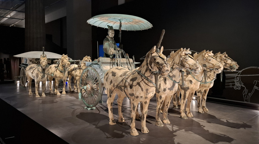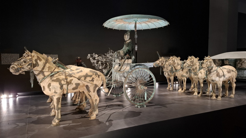 Most menjünk tovább, és nézzük, mi minden vár még ránk ezen a rendkívüli kiállításon Újabb izgalmas látnivalót kínál a császári sírból kiemelt két kocsi kicsinyített mása. A császári díszmenet részei az egész sírkomplexum legértékesebb darabjai közé tartoznak.