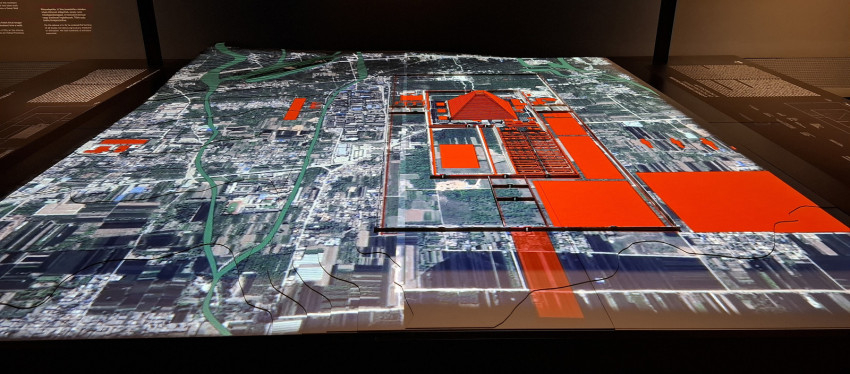 A kiállítás egyik fő látványossága a császár sírkertje, temetkezési helye. Egy hatalmas terepasztalon szemlélhetjük meg ezt a városnyi méretű temetőt. Építése már a császár trónra lépésekor megkezdődött, és több mint harmincnyolc éven át tartott, de a haláláig sem fejeződött be. A munkák irányítója a főminiszter volt, mellette több magas rangú hivatalnok is felügyelte az építkezés egyes fázisait. Több mint hétszázezren dolgoztak itt, többségük rabként, elítéltként. Csin Si Huang-ti császár a kínai fejedelemségek leigázása után a meghódított területekről is számos embert vezényelt az építkezésre. A komplexum mint afféle város szolgálja a halottakat. Sokak temetkezőhelye volt itt, a kínai régészek már mintegy hatszáz ember maradványait ásták ki az elmúlt ötven évben, a császársír központi része azonban – szándékosan – máig feltáratlan.
