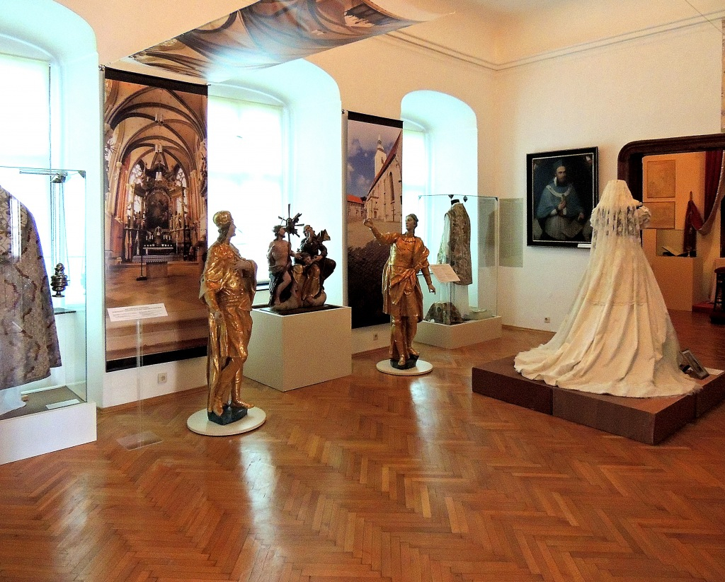 Veszprém a tíz, Szent István által alapított püspökség egyike volt, s 1001 körül már biztosan létezett. A veszprémi székesegyházat középkori forrásaink szerint a bajor származású Gizella királyné alapította. Az új összefoglaló tárlat elsősorban a veszprémi püspökök királyné-koronázási jogkörével foglalkozik.