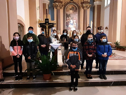 Az ima eredeti időpontjában, október 18-án a 9 órakor kezdődő szentmisén az 5.a osztályos tanulók végeztek felolvasói szolgálatot. Attila atya jóvoltából Szent II. János Pál pápa ereklyéje előtt imádkoztak a missziókért, országunk vezetőinek bölcs és bátor helytállásáért.