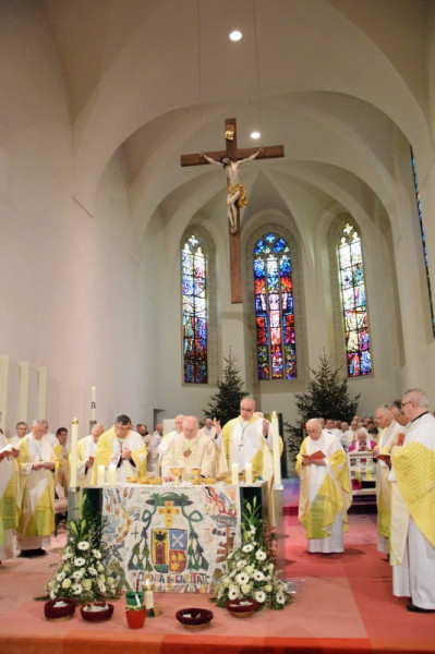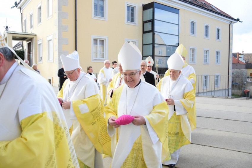 Peter Stephan Zubriggen apostoli nuncius, Puljic érsek, Koch szuperintendens méltatása, köszöntő szavai után Niessl tartományfőnök arról beszélt, mily nagy mértékben járult hozzá a Katolikus Egyház a száz évvel ezelőtt alapított Osztrák Köztársaság fejlődéséhez.