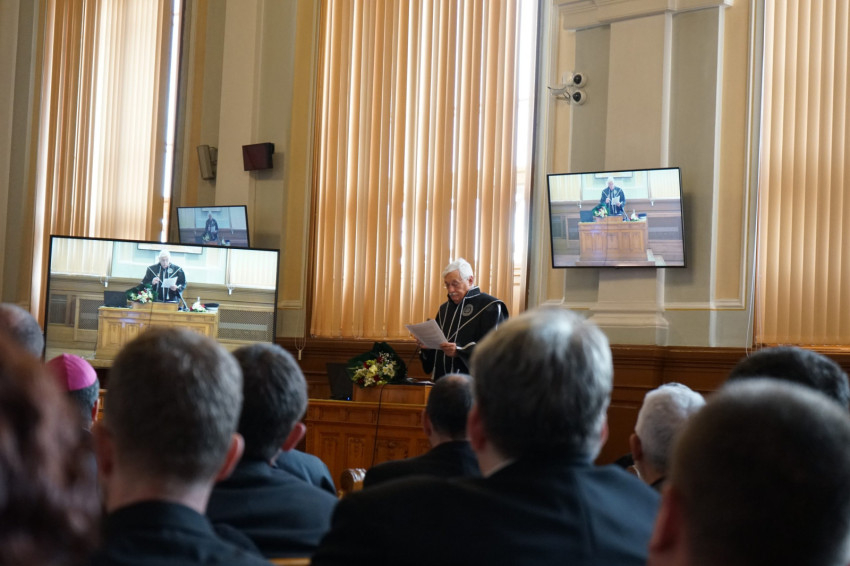 A díszdoktori oklevél átadását követően Arturo Sosa Abascal beszédében a szinodalitás újdonságairól és eredményeiről, az Egyházról mint a közösségek közösségéről beszélt, és arról, hogy a latin-amerikai egyház törekvései hogyan hatottak a teológiai gondolkodásra, hogyan mutatkoznak meg Ferenc pápa gondolkodásában is.