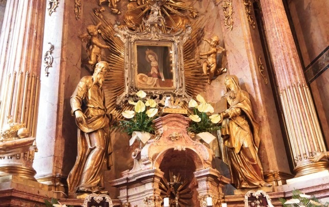 Az imádkozó Szűzanyát és a gyermek Jézust ábrázoló festmény az előkelő ír családból származó Walter Lynch clonferti püspöké volt, akinek az írországi katolikusok ellen irányuló üldözés miatt menekülnie kellett hazájából, a képet magával vitte a száműzetésbe. Püsky János püspök Győrbe hívta az ír püspököt, akit kanonokká és püspöki helynökké nevezett ki. Walter Lynch Győrben élt 1663-ban bekövetkezett haláláig.