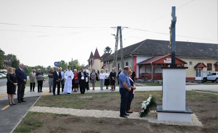 „A feszület arra emlékeztet, hogy az életnek két síkja van: egy vertikális, ami az Istennel, illetve egy vízszintes, ami az emberekkel való kapcsolatot jelenti. A kereszt arra hívja fel az erre közlekedők figyelmét, hogy kövessék Jézus Krisztus tanítását” – mondta Kiss-Rigó László püspök, miután megáldotta a feszületet.
