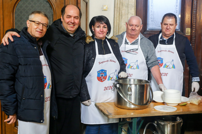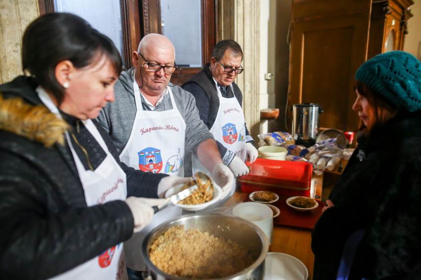 Az ízletes ebédet a Sant’Egidio közösség régi barátai, segítői, a Kapuvári ÍzvadÁszok főzték, akik a közösség tagjait és szegény barátait is már név szerint ismerik, nemcsak Budapesten, hanem Pécsen és Rómában is, ahol vízkeresztkor főznek immár évek óta a közösség szegények számára fenntartott étkezdéjében.