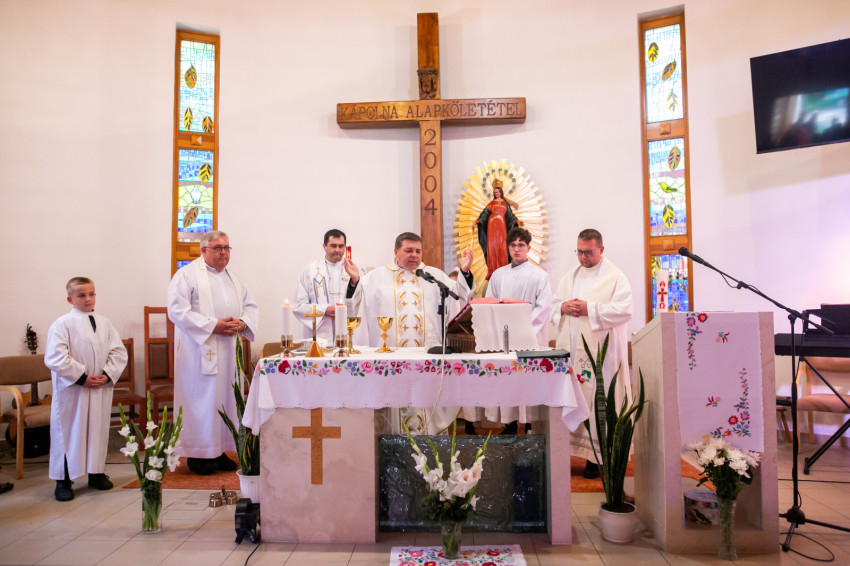 „A kápolna üvegablakai, a képek a falakon, vagy ha kitekintünk az ajtón, minden arra emlékeztet bennünket, hogy mi is részei vagyunk a minket körülvevő világnak, és felelősek vagyunk érte; külön-külön is, és együtt is – hangsúlyozta szentbeszédében Tóth Tamás. – Ahogy az ember nézi a teremtett világ szépségeit, vagy sétál itt a parkban, óhatatlanul is közel kerül ahhoz, hogy megértse, mit jelent az, hogy mi, emberek egy nagy egész részei vagyunk, Isten teremtett világának a részei.”